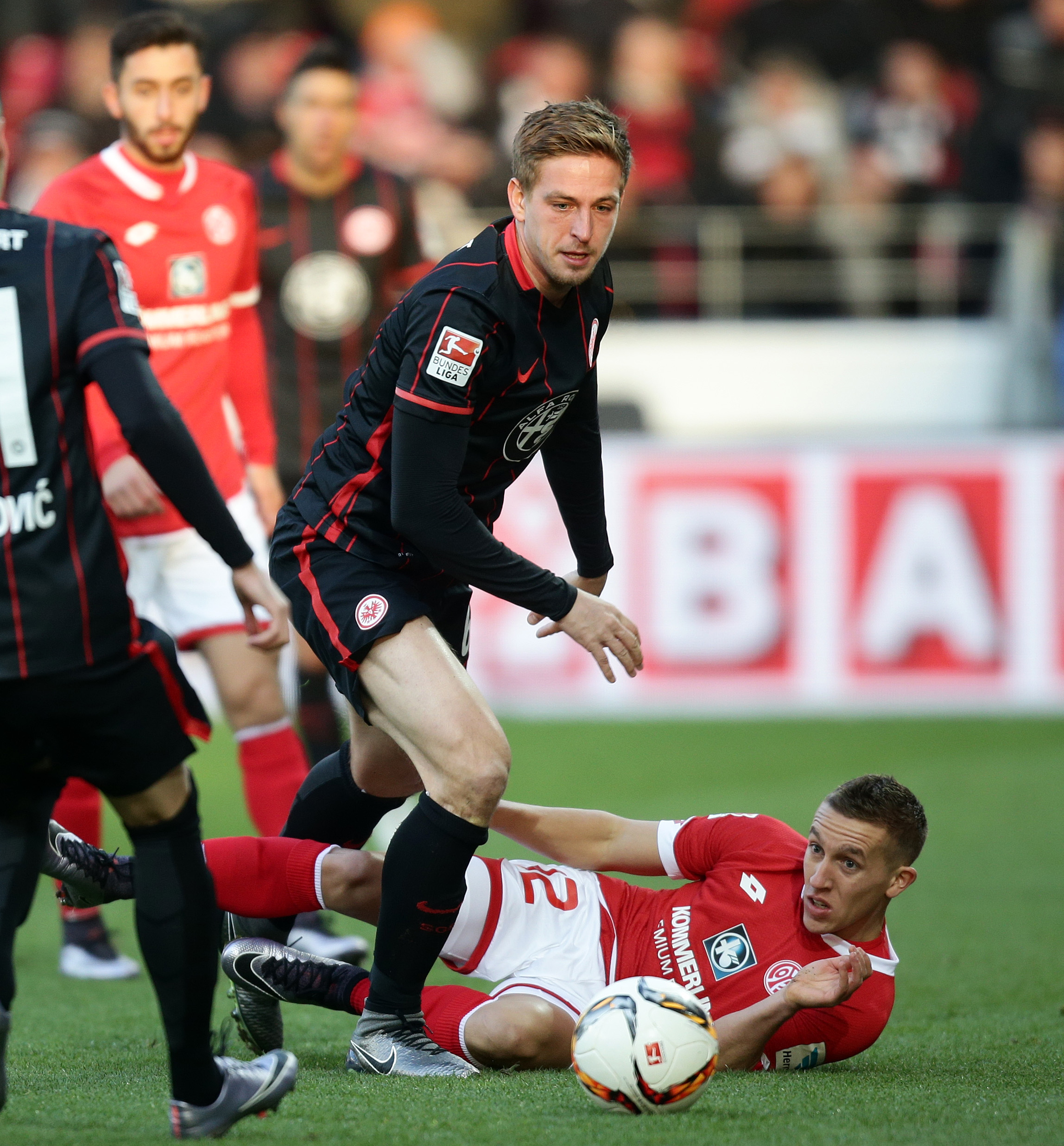 Mainz bleibt Mainz – wie es singt und lacht. Mit Platz 6 haben die Rheinhessen momentan viel zu lachen. Europa ist in Reichweite und die Elf von Überraschungs-Trainer Martin Schmidt, dem Haarzottel aus der Schweiz, erscheint gefestigt und nur allzu bereit diese Mission in den verbleibenden vier Spielen erfolgreich abzuwickeln. Zwar ging die Partie am vergangenen Spieltag mit 2:3 gegen Köln verloren, aber das tut der entspannten Stimmung in Mainz keinen Abbrauch. Der scheidende Manager Christian Heidel, wahrscheinlich in der Bundesliga einer der besten seines Fachs, kann sich seinen Abschied zu Schalke 04 enventuell mit dem europäischen Geschäft „versüßen“. Seine zusammengestellten Mannschaften schafften es Jahr zu Jahr neu zu überraschen und nach jeder Saison hatte man Top-Spieler in der ersten Elf stehen, die wieder für teures Geld verkauft wurden. Die Saison 2015/16 kann an den Namen Malli, Cordoba, Baumgartlinger und Clemens festgemacht werden. Die Eintracht bekommt es mit einer spielstarken, aber auch kontergefährlichen Elf zu tun.