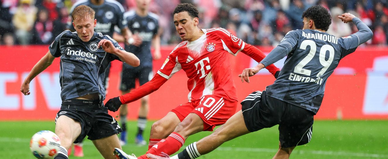 Halbzeitfazit: Gegen ein dominant auftretendes Bayern München hatte Eintracht Frankfurt von Anfang an Probleme ins Spiel zu finden. Nach einer Viertelstunde ging der Rekordmeister durch Aleksandar Pavlović in Führung. Sein Volleyabschluss rutschte Kaua Santos durch die Handschuhe ins Tor. Nur wenige Minuten später erhöhte dann Harry Kane per Kopf. In der Folge wurde das Spiel etwas ruhiger und die Bayern liefen nicht mehr mit demselben Tempo wie in der Anfangsphase an. Es dauerte 39 Minuten bis auch die SGE mal einen Torschuss abgab. Jean-Mattéo Bahoyas Flachschuss war für Jonas Urbig im FCB-Kasten aber keine Herausforderung. Somit liegt die Eintracht zur Pause völlig verdient mit 0:2 in Rückstand.