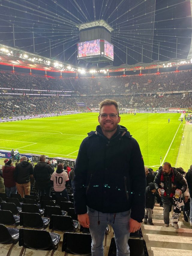 Christopher Michel, Journalist aus Bad Vilbel: „Mein persönlicher Eintracht-Moment war am 14. April 2022. Wäre ich tätowiert, dann hätte dieses Datum irgendwo auf meinem Körper ein Plätzchen gefunden. Ich habe immer davon geträumt, ein Eintracht-Pflichtspiel in Camp Nou erleben zu dürfen. Und dann ist es ein Europa-League-Viertelfinale gegen diesen stolzen und ruhmreichen Klub. Zu sehen, wie die spanischen Radioreporter neben mir immer leiser und fassungsloser wurden, nachdem Filip Kostic das 3:0 erzielte, bleibt unvergessen. Nein, damit hatte in Barcelona niemand gerechnet! Es war für den Klub vor allem eine soziale Demütigung, weil das Stadion auch auf den Rängen eingenommen wurde. Wenn plötzlich ein „Wer nicht hüpft ist Offenbacher“ lauter durch das weite Rund tönt als die Vereinshymne, dann ist alles gesagt. Die 30-minütige Feier der Spieler nach Abpfiff vor 30.000 SGE-Fans – die sich plötzlich alle wie kleine Ameisen in Bewegung setzten und unterhalb des Gästeblocks zusammenkamen – in diesem Stadion, der Diver von Oliver Glasner, die erste PK-Frage kurz nach Mitternacht… der 14. April 2022 ist ganz fest in meinem Gedächtnis verankert.“