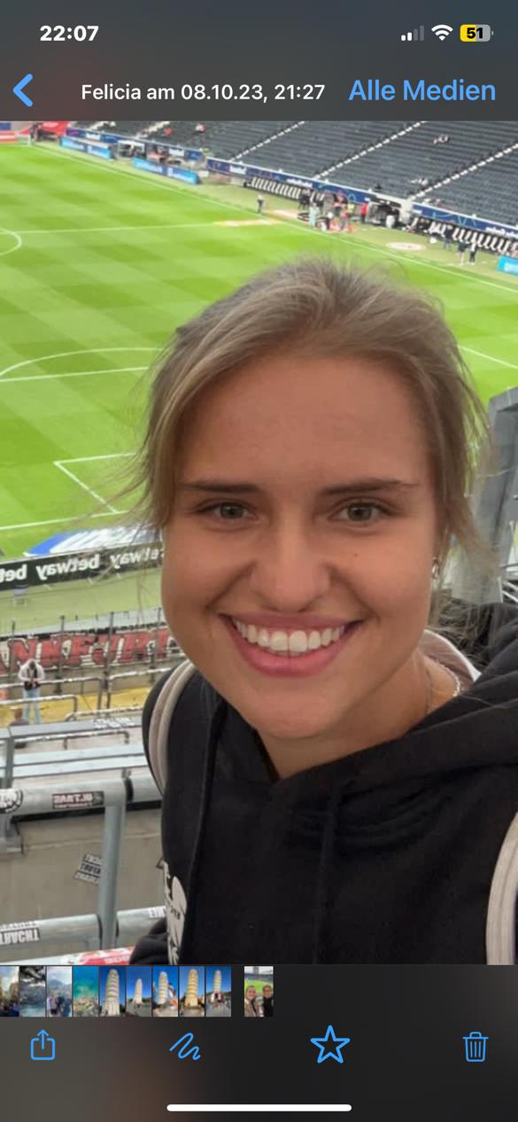 Lisa Rothenburger, Eintracht-Fan aus Frankfurt: „Zu sagen, die Eintracht ist für mich so etwas wie Familie klingt so abgedroschen daher gesagt, aber wenn man es näher betrachtet ist es am Ende doch genau so. Die Eintracht wie ein nach Hause kommen. Eine Zusammenkunft von Menschen, deren Herzen für 90 Minuten und mehr den gleichen Takt schlagen. Die Eintracht war immer da und wird es immer sein und ich bin sehr glücklich darüber ein Teil dieses großen Gefühls sein zu dürfen.“