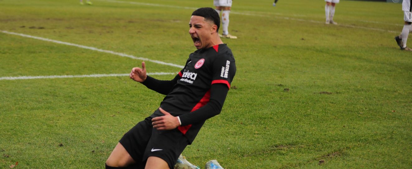 Coach Dennis Schmitt war sichtlich erleichtert. Im letzten Spiel des Jahres hat die U21 von Eintracht Frankfurt einen wichtigen 3:2-Sieg gegen Hessen Kassel eingefahren und damit einen versöhnlichen Ausklang des Fußballjahres 2024 hingelegt. Mit dem Dreier tauschen die Kicker vom Riederwald in der Regionalliga Südwest mit dem Gegner aus Nordhessen die Plätze und bleiben in Reichweite zu den Nicht-Abstiegsplätzen. „Wir sind zufrieden, haben ein gutes Spiel gemacht“, bilanzierte Schmitt im vereinseigenen Interview. Der U21-Trainer musste auf ein Dutzend Spieler verzichten. „Es waren fünf Spieler, die noch U19 oder Ebu auch noch U17 spielen dürfen. Dazu kamen mit Nilo Neuendorff und Anes Alaoui noch zwei Spieler rein.“