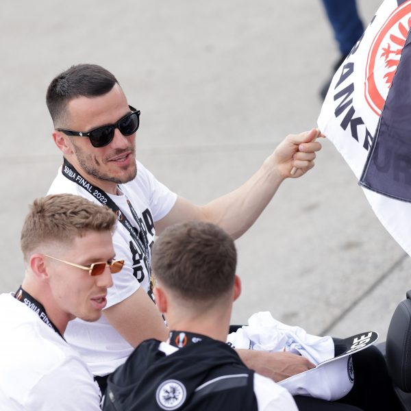 Die Frankfurter Europa-Helden auf voller Fahrt durch das Rhein-Main-Gebiet! Am Donnerstag präsentierte der Rhein-Main-Verkehrsverbund (RMV) eine S-Bahn, die mit Fotomotiven aus Sevilla beklebt wurde. „Europas beste Mannschaft 2022“ steht vorne ...