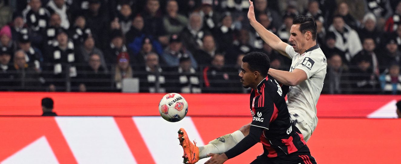 Halbzeitfazit: Die Partie begann stimmungsvoll, weil die Nordwestkurve eine Choreografie zum 50-jährigen Bestehen des EFC Sossenheim zeigte. In der Anfangsphase hatte die Eintracht durch Farés Chaibi eine gefährliche Abschlusssituation aus spitzem Winkel, die den Mainzer Torhüter Robin Zentner allerdings nicht vor Probleme stellte. Danach schaffte es die SGE nur selten zu längeren Ballbesitzphasen oder Ballstafetten. Die Folge: Häufig lange Bälle auf Ansgar Knauff und Jonathan Burkardt, die nur bedingt durch Abstimmungsfehler der Gäste gefährlich wurden. Die Rheinhessen hingegen gewannen viele zweite Bälle und zeigten zum ersten Mal nach 20 Minuten Torgefahr, als ein Dahoud-Fehlpass im Aufbau beim Gegner landete. Nach Hereingabe von außen köpfte Phillipp Mwene aber vorbei. Torchancen waren danach weiterhin auf beiden Seiten weitgehend Mangelware. Viele Zweikämpfe fanden in den Halbfeldern statt, nur wenige Spielfluss kam auf. In der 40. Minute flog mal eine Flanke von Paul Nebel gefährlich lange durch den Gefahrenbereich vor Michael Zetterer, aber schlussendlich an Freund und Feind vorbei ins Toraus. Insgesamt hatten die Rheinhessen mehr vom Spiel, auch wenn beide Teams nur selten gefährlich vor des Gegners Tor kamen. So endete die erste Hälfte nach einer Minute Nachspielzeit torlos.