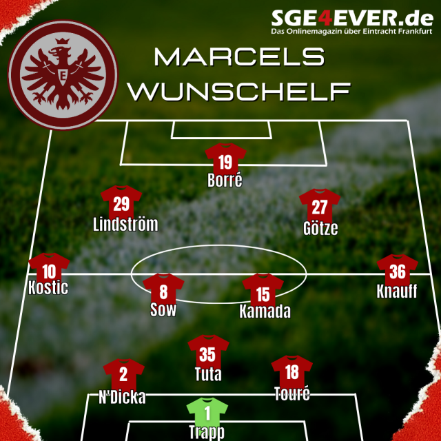 Die Stammelf speist sich aus einem Großteil an Europapokal-Siegern. Daichi Kamada wird sich auf Sicht im stark besetzten Mittelfeld nicht behaupten können. Dafür sollte Weltmeister Mario Götze gesetzt sein. Er ließ im Pokalspiel in Magdeburg seine Genialität im Passspiel bereits aufblitzen.
