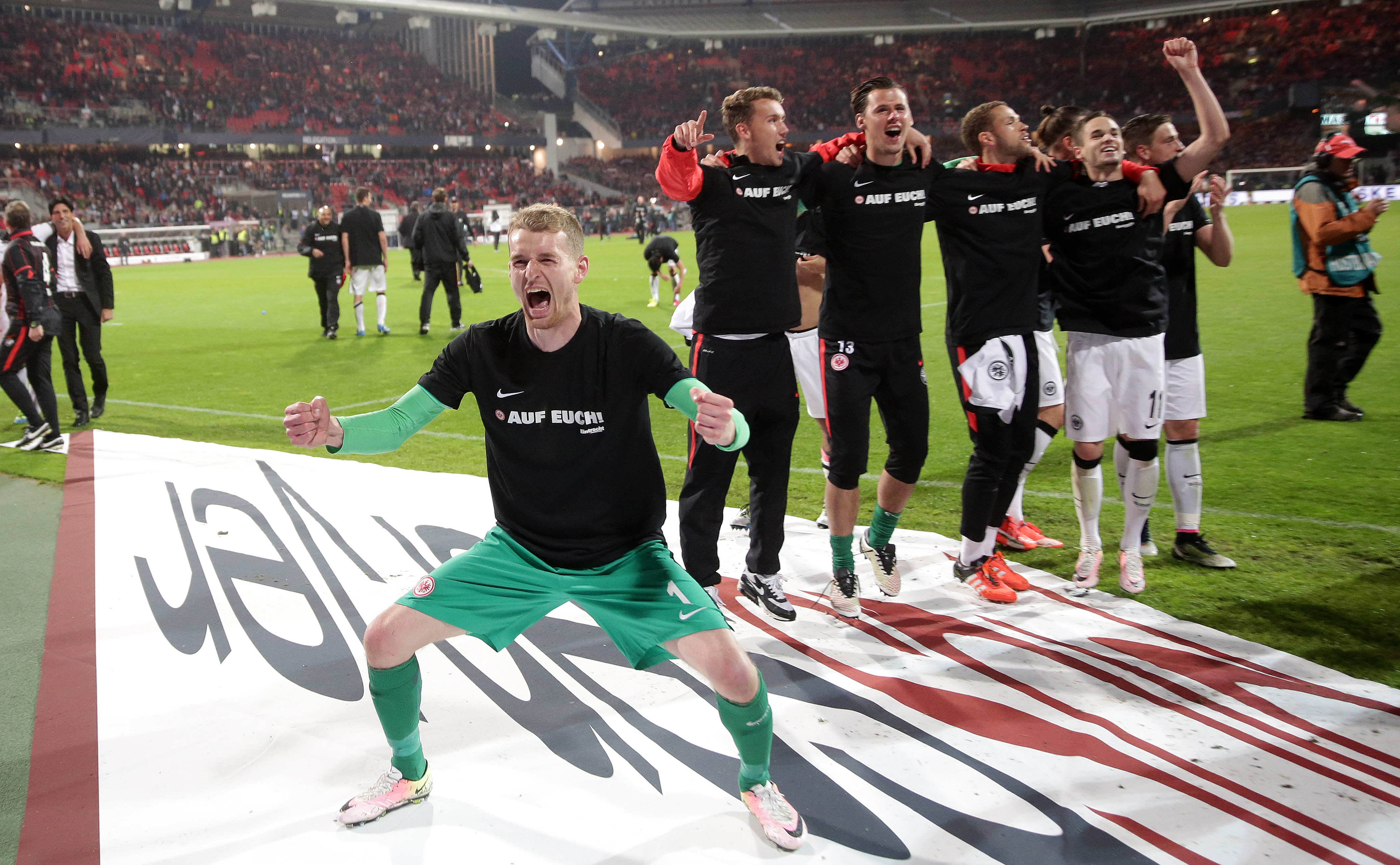 Auch wenn die Partie anschließend noch fast dreißig Minuten lief, war zu spüren, dass dieses Tor das entscheidende sein sollte. Die Nürnberger kamen trotz offensiverer Wechsel nur sehr mühsam in Richtung Gästestrafraum, die Defensive der Hessen hielt – wie in den letzten Wochen bestens organisiert von einem starken David Abraham – den biederen Angriffsversuchen der Gastgeber stand. „We fucking did it! Thank you everybody for your support“, postete Schlussmann Lukas Hradecky, der noch viel Kraft beim Jubelmarathon hatte, weil er in beiden Partien kaum gefordert wurde. „Das sind Gefühle, die man nicht beschreiben kann“ – wer möchte den Worten von Präsident Peter Fischer in diesen Momenten noch widersprechen?