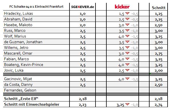 Die Einzelnoten der über 640 abstimmenden SGE4EVER.de-User im Überblick: