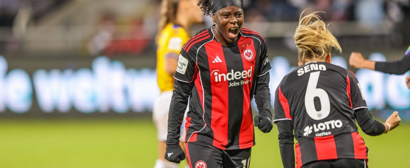 In der zweiten Halbzeit konnten die Adlerträgerinnen dann nach zehn Minuten jubeln. Nachdem Stürmerin Nicole Anyomi gefoult wurde, zeigte die Schiedsrichterin auf den Punkt. Den fälligen Strafstoß verwandelte Elisa Senß gleichermaßen stark und sicher neben den linken Pfosten. In der 68. Minute dann aber die kalte Dusche für die SGE, denn die bis dahin weitestgehend harmlosen Gäste kamen zum Ausgleich. Die SGE schlief in der Abwehr, so dass Isabella Jaron auf einem frei durch war und SGE-Keeperin Lina Altenburg keine Chance lies. Die Mannschaft von Trainer Niko Arnautis zeigte dann aber Nehmerqualitäten, schüttelte sich kurz und kam zur erneuten Führung. Nach einer Ecke gab es im Jenaer Strafraum ein Durcheinander, Amanda Ilestedt behielt den Überblick und brachte den Ball über die Linie. Die erneute Führung für die Adlerträgerinnen und schon das dritte Tor im fünften Spiel für die Innenverteidigerin. In der 81. Minute machten die Frauen der Eintracht dann alles klar – und es war wieder die Kombi Anyomi-Senß, die für den Treffer sorgte. Erneut gab es nach Foul an Anyomi Elfmeter, erneut verwandelte Senß präzise. Fast hätte es nochmal geklingelt, Anyomi scheiterte in der 83. Minute aber auch am Pfosten.