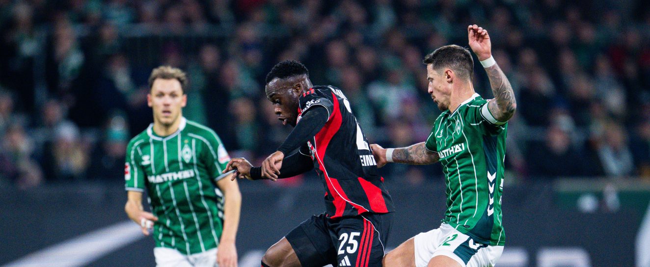 Halbzeitfazit: Wie beim VfB Stuttgart erwischte die Eintracht einen Traumstart und ging bereits mit der ersten Aktion des Spiels in Führung. Vorausgegangen war ein langer Ball von Arthur Theate, der Ritsu Doan fand. Der Japaner behauptete die Kugel gut, hielt sie lange und schlug eine scharfe Flanke auf Nene Brown, der per Kopf am zweiten Pfosten auf Arnaud Kalimuendo auflegte. Der Winterneuzugang aus Nottingham spitzelte das Leder an den verdutzten Mio Backhaus vorbei in die lange Ecke. Das war aber gefühlt die einzige nennenswerte Offensivaktion der SGE. Mit der Schock-Verletzung von Rasmus Kristensen, der lange behandelt werden musste, war die Luft bei den Hessen raus. Fortan bestimmte Werder Bremen mit zunehmender Spieldauer das Spielgeschehen und belohnte sich folgerichtig mit dem verdienten Ausgleich in persona Justin Njinmah. Ein Pass in die Schnittstelle fand den Torschützen, der freistehend vor Kaua Santos flach ins linke Eck vollendete. Wieder einmal gab die gesamte Hintermannschaft der Adler keine gute Figur ab. Gegentor Nummer 37 inzwischen. Mit dem Remis ist die Mannschaft von Dino Toppmöller noch gut bedient, denn die Hausherren drückten auf das zweite Tor, aber ohne zwingend gefährlich zu werden. Für die zweiten 45 Minuten muss eine klare Leistungssteigerung her, will man hier etwas mitnehmen.