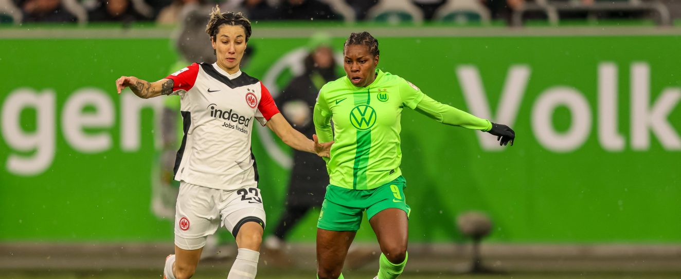 Nur fünf Minuten später klingelte es schon wieder im Kasten von Eintracht-Keeperin Stina Johannes. Sarai Linder schickte Wölfe-Stürmerin Lineth Beerensteyn aus der eigenen Hälfte mit einem Pass in die Tiefe ins Laufduell. Die Frankfurter Verteidigerin Sara Doorsoun kam nicht mehr entscheidend hinterher, weshalb die bärenstarke Beerensteyn an Johannes vorbei zum 2:0 einnetzen konnte.
