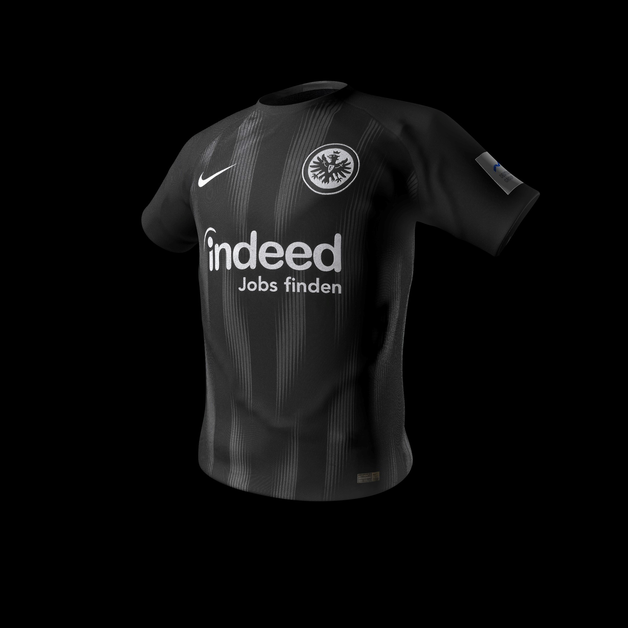 Mit schwarz-grauen Längsstreifen und einem schwarz-weiß gehaltenen Adler-Logo setzt das neue Dress auf eine schlanke Linie. „Die Mannschaft kommt über die Willenskraft. Schwarz signalisiert das. Das ist Kraft, das ist Würde. Wer uns schlagen will, muss das repräsentieren. Wir sind eine Mannschaft, ein Block. Wir geben Gas und das zusammen“, so Axel Hellmann. Für 84,95 Euro wird die Standardversion ab dem 17. Juli zu kaufen sein, die Stadionversion gibt es bereits ab dem 2. Juli für 49,95 Euro. Die Spielerversion (ebenfalls erst ab dem 17. Juli) gibt es für 129,95 Euro zu kaufen. Für die Ärmel gibt es in der neuen Runde gleich drei Versionen. Liga-Logo der DFL, Europa League-Logo und das DFB-Pokalsieger-Logo. Die Fans haben die freie Auswahl.