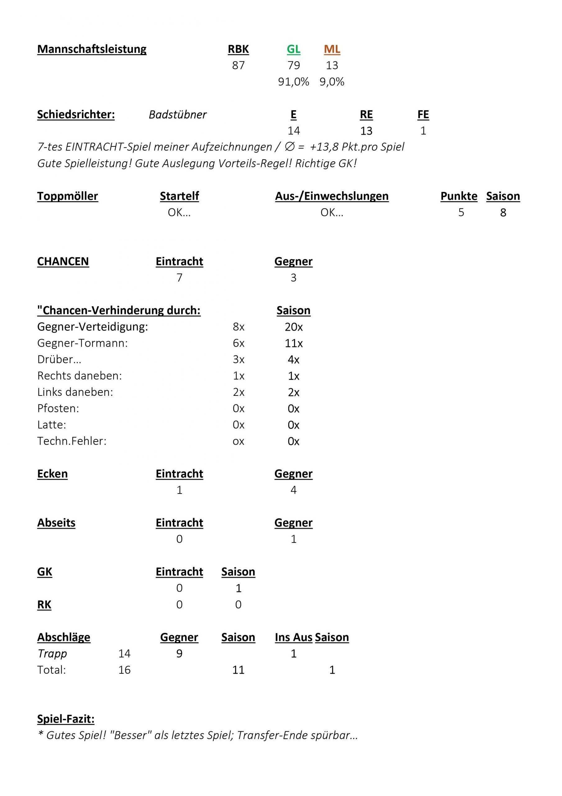 Meine Bewertungen spiegeln aus meiner Erfahrung normalerweise durchaus sowohl das tatsächlich erzielte Spielergebnis, als auch insbesondere die „Qualität des Mannschaftsspiels“! Unabhängig davon, ob gewonnen, oder verloren wurde…