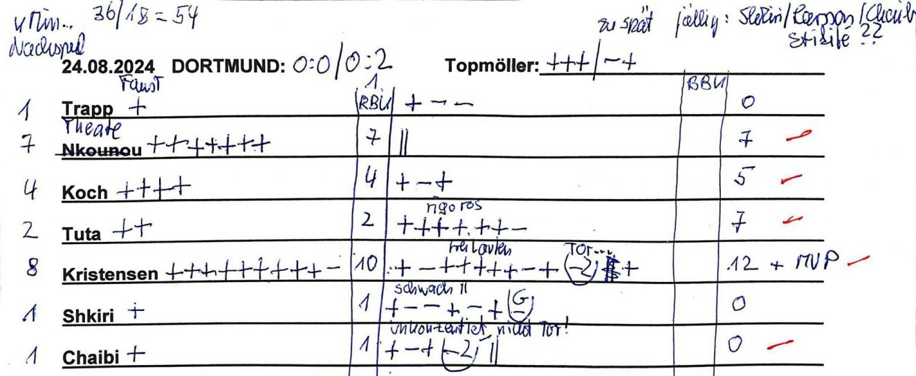 Und zur Bewertung von Ekitiké: Grundsätzlich: Ja, er hat das Führungstor geschossen… Da wir danach das zweite nachgelegt hatten (Larsson), danach das 1:2 kassierten, Marmoush dann den Deckel drauf gemacht hatte,- lagen wir während der gesamten Spielzeit „in Führung“: