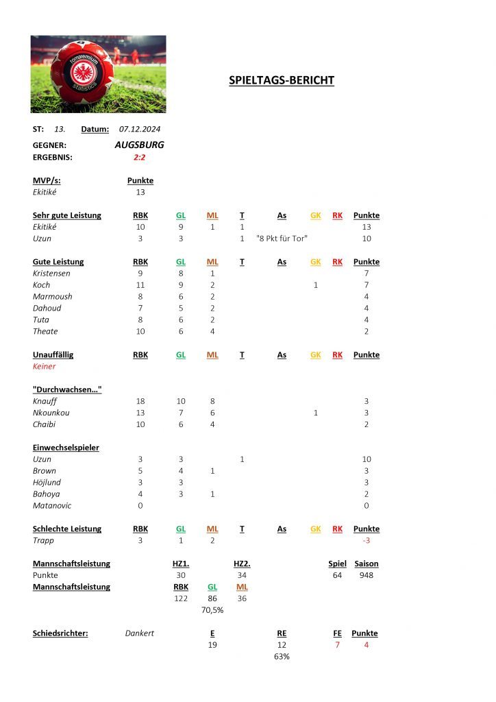 Für das Augsburg-Spiel ergab sich folgende Auswertung: