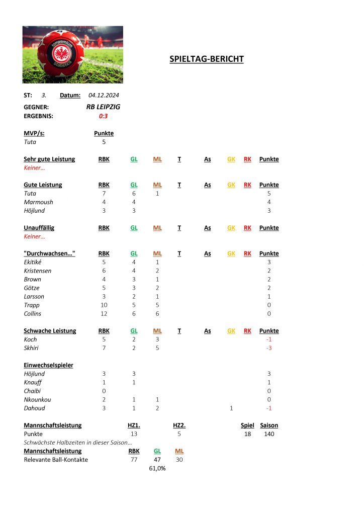 Für das Leipzig-Spiel ergab sich folgende Auswertung: