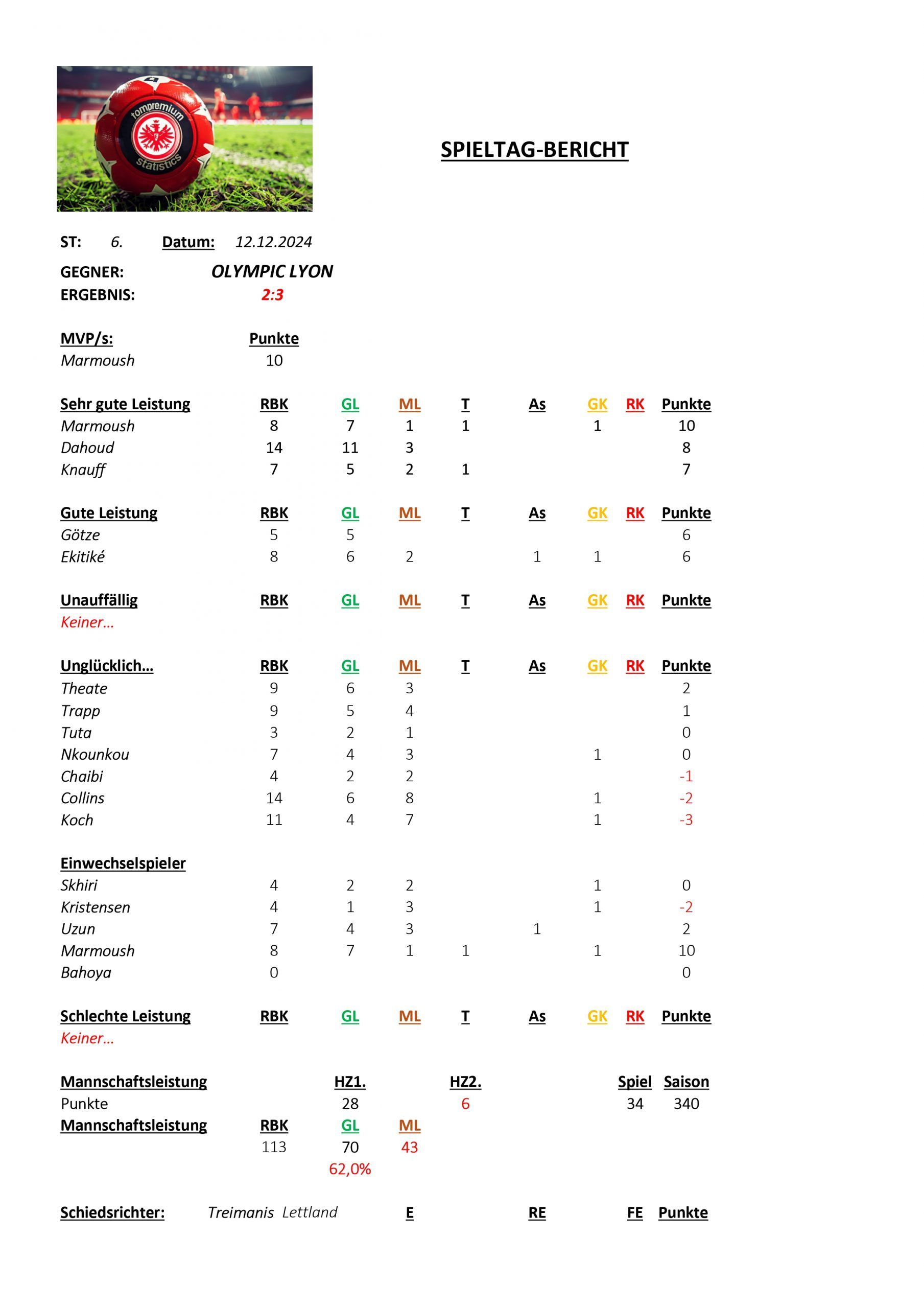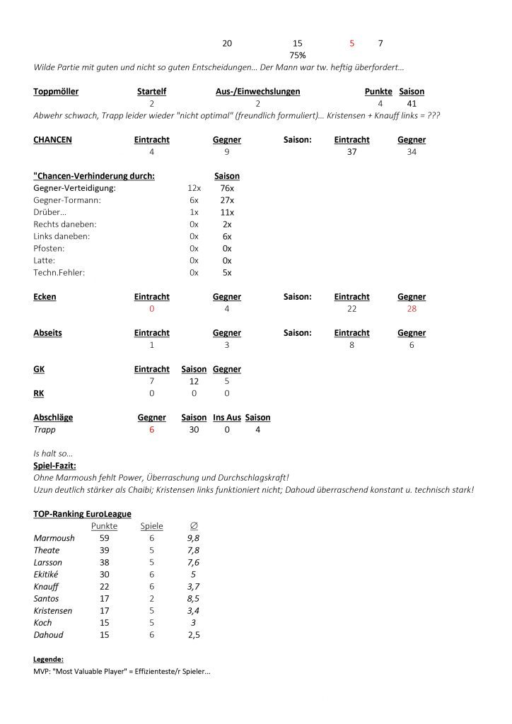 Etwas später als sonst: Wir wollen euch aber die Eintracht-Statistics zum Lyon-Spiel nicht vorenthalten. Demnächst also wieder gewohnt vor den Noten zum Spiel.
