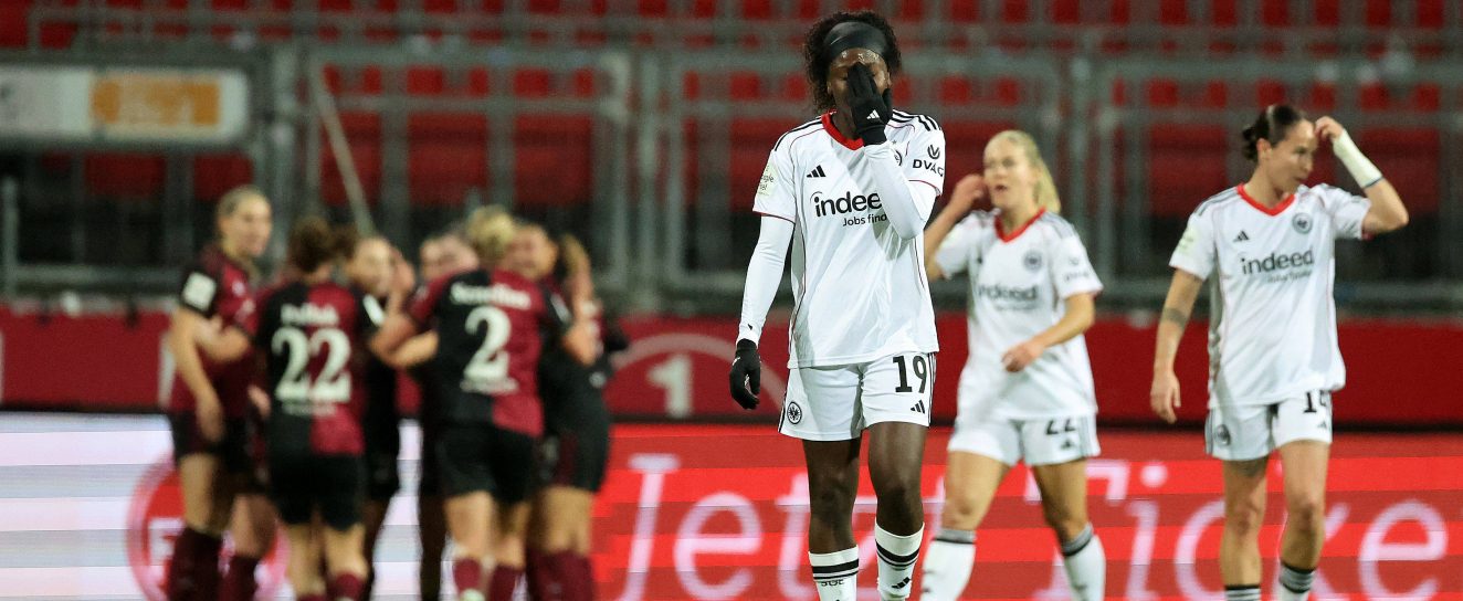 Nach dem krachenden 0:5 gegen den FC Bayern München am vergangenen Wochenende, fing sich die SGE beim Nachholspiel des elften Spieltags am Mittwochabend schon wieder fünf Gegentreffer! Bei den Aufsteigerinnen aus Nürnberg verloren die Frauen der Eintracht in einem wilden Spiel mit 3:5. Vor 991 Zuschauern verpassten es die Frankfurterinnen im Max-Morlock-Stadion eine Antwort auf die vergangene Pleite zu liefern. Zwar waren die Gäste vom Main deutlich überlegen, aber am Ende machten die Clubberinnen aus wenig die entscheidenden Tore. Dabei zeigte sich die Defensive der Hessinnen bei Kontern und Standards besonders anfällig. Die Dreierpackerin Nastassja Lein bekam man immer wieder nicht unter Kontrolle.