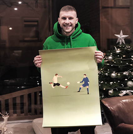 „Allerdings! (Mathias lacht) Der Weg der Eintracht in den letzten Jahren hat mich als alten Frankfurter natürlich besonders gefreut. Dadurch hat die ganze Arbeit gleich doppelt so viel Spaß gemacht. Das Tor von Ante Rebic zum 2:1 war übrigens unser erstes Vereins-Plakat, das wir rausgebracht haben. Wir haben es Ante ein paar Monate später dann auch schenken dürfen, was uns sehr gefreut hat – und ihn auch!“