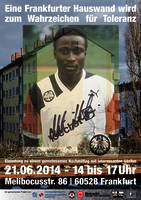 Das Konterfei unserer Eintracht Legende Anthony Yeboah wacht ab Samstag den 21.06. in Niederrad gegen Fremdenfeindlichkeit und Rassismus.