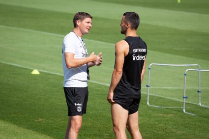 „Wir wollen in jedem Spiel gut vorbereitet sein, wir wollen in jedem Spiel unsere Leistung bringen“, macht Glasner keinen Unterschied, ob seine Mannschaft in den rund 25 Pflichtspielen bis November im Pokal, in der Bundesliga oder in der Königsklasse antreten wird. „Wir haben unseren Kader in der Spitze und in der Breite verbessert, um dieses Programm absolvieren zu können.“ Deswegen sei es wichtig, dass Leistungsträger wie Filip Kostic gehalten werden. „Ich bin sehr viel mit ihm im Austausch. Wenn man ihn sieht im Training, wenn man ihn sieht in den Testspielen, mit welchem Engagement und welcher Leidenschaft er dabei ist, dann gehe ich einfach davon aus, dass er bei uns bleibt. Ich kann es natürlich nicht garantieren, weil immer wieder etwas passieren kann – in alle Richtungen. (…) Unser Wunsch ist ganz klar: Dass wir mit Filip, mit Evan N’Dicka und Daichi Kamada in die neue Saison gehen.“