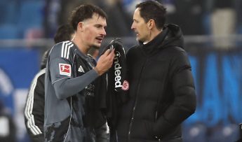 Cheftrainer Adi Hütter: „Wir sind alle sehr angefressen, dass wir nicht gewinnen konnten. Die Führung hat uns sehr gutgetan und war nach der 100-prozentigen Torchance durch Filip Kostic zuvor auch nicht unverdient. Wir müssen versuchen, konsequenter zu verteidigen. Speziell über die Seite haben wir zu passiv agiert und haben in der einen oder anderen Situation den letzten Pass nicht verhindert, weil wir nicht aggressiv genug waren. Deswegen ärgert uns die Niederlage, wenn auch gegen eine gute Mannschaft. Aber drei Punkte waren möglich. Die Mannschaft hat es nicht verdient, hier noch zu verlieren. Wenn wir es nicht schaffen, die eine oder andere Situation früher zu erkennen und besser zu verteidigen, ist es einfach schade. Denn die Mannschaft arbeitet unter der Woche richtig gut. Was uns einfach fehlt, ist voll zu punkten. Sorgen habe ich trotzdem keine, weil wir in keinem Spiel außer bei den Bayern wirklich die unterlegene Mannschaft waren. Uns fehlt aktuell einfach auch das Quäntchen Glück, mit dem zweiten Tor etwas mehr Ruhe zu haben. Daran müssen wir hart arbeiten. Auf der einen Seite befinden wir uns im Niemandsland, auf der anderen Seite haben wir noch in zwei Spielen die Gelegenheit, alles rauszuhauen, um einen oder vielleicht zwei Siege einzufahren. Dieser Herausforderung werden wir uns stellen.“