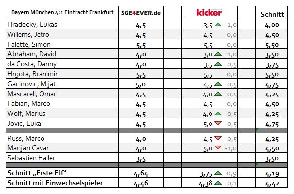 Die Einzelnoten der über 430 abstimmenden SGE4EVER.de-User im Überblick: