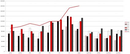Gerade in den Sommermonaten überschlugen sich die Zugriffszahlen und es folgte ein Rekord dem nächsten. Bereits im Juli dachten wir, dass über 1,7 Millionen Seitenaufrufe nicht so schnell zu toppen wären. Doch dann kam der August und wir knackten die 1,8 Millionen Aufrufe. So viele Seitenaufrufe wie noch nie im Monat August und auch insgesamt in der Geschichte von SGE4EVER.de! Der Vorjahresaugust (1,326 Mio.) wurde somit um 36 Prozent übertrumpft. Der totale Wahnsinn.