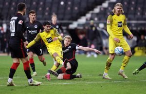 Auch wenn das Jahr 2022 mit dem Europa-League-Titel gekrönt werden sollte, verlief der Start sehr enttäuschend. Zum ersten Spiel des Jahres kam der BVB an den Main. Vor 1.000 Zuschauern stellte Rafael Borré in einem anspruchsvollen Spiel per Doppelpack eine 2:0-Führung zur Halbzeit her. Diese sollte bis kurz vor Ende anhalten, ehe die Borussia in Person von Thorgan Hazard (71.), Jude Bellingham (86.) und dem heutigen Frankfurter Mo Dahoud (89.) noch drei Punkte mit nach Hause nehmen konnte. Es folgte ein 1:1 in Augsburg, bei dem Torhüter Diant Ramaj sein Debüt feierte, und eine desolate 0:2-Heimniederlage gegen Arminia Bielefeld. Den ersten Ligaerfolg des Jahres 2022 konnte die SGE erst Anfang März gegen den VfL Bochum feiern.