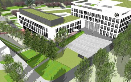 Bau der neuen Geschäftsstelle offiziell: Mitte März gab Eintracht Frankfurt offiziell bekannt, dass der Bau der neuen Geschäftsstelle unter Dach und Fach ist. Südöstlich von der Commerzbank-Arena soll die neue Anlage inklusive Profi-Camp errichtet werden, Vorstandsmitglied Axel Hellmann bezeichnete den Standort als sportliches Herz. „Alle Mitarbeiter der Fußball AG, von den Lizenzspielern über die einzelnen Abteilungen bis zum Vorstand sollen in Zukunft unter einem Dach arbeiten. In weiser Voraussicht ist das Bauprojekt auf 240 Arbeitsplätze angelegt“.