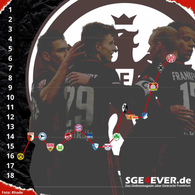 Die Achterbahnfahrt hatte also ein sehr positives Ende für die Eintracht genommen. In den letzten sieben Bundesliga-Spielen gewann sie sechs Partien. Anders ausgedrückt: In den Spieltagen 1 bis 10 erspielten die Frankfurter neun Punkte. In den Spieltagen 11 bis 17 dann 18 Punkte, also doppelt so viele. Von Platz 15 arbeiteten sie sich auf Platz Sechs hoch. Damit überwintert man auf einem internationalen Tabellenplatz.