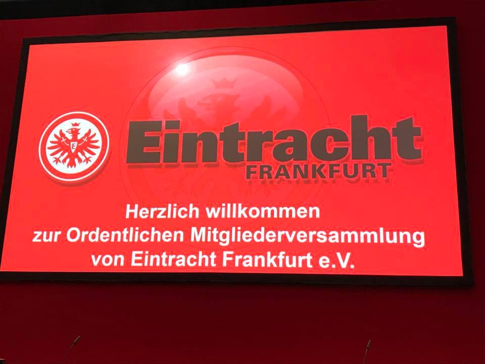 Seit 11 Uhr läuft die diesjährige Ordentliche Jahreshauptversammlung der Eintracht in der Wolfgang-Steubing-Halle am Riederwald.