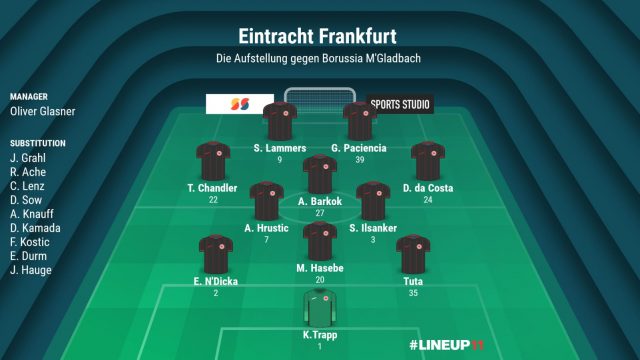 Trapp – Chandler, N’dicka, Tuta, Da Costa – Hrustic, Hasebe, Ilsanker – Barkok – Paciencia, Lammers