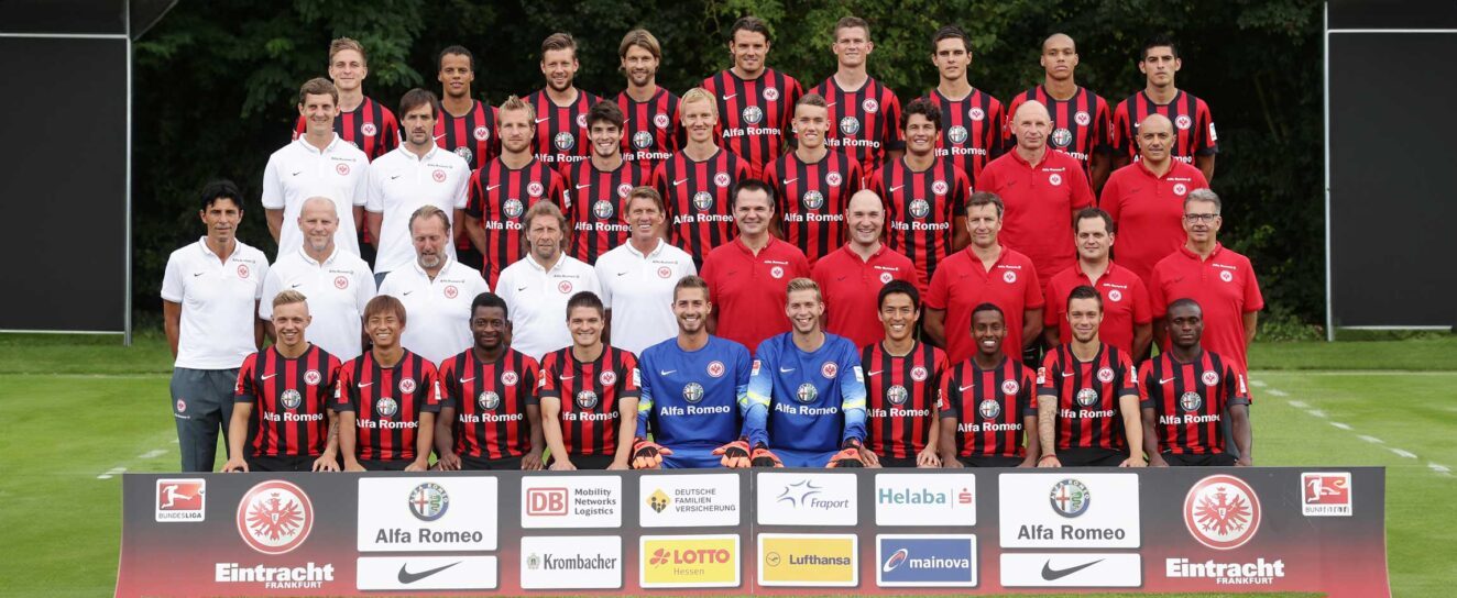 Vordere Reihe von links: Sonny Kittel, Takashi Inui, David Kinsombi, Aleksandar Ignjovski, Kevin Trapp, Felix Wiedwald, Makoto Hasebe, Joel Gerezgiher, Vaclav Kadlec, Constant Djakpa
