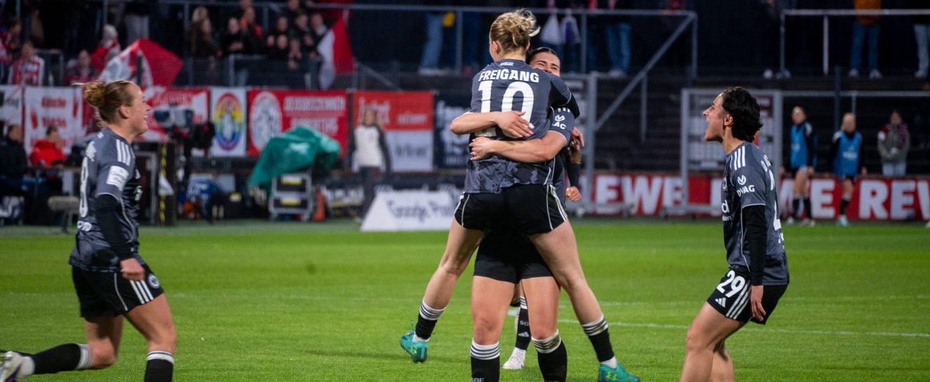 Nach der schmerzhaften 0:3-Niederlage der Frauen von Eintracht Frankfurt im Europa Cup unter der Woche, gewann das Team von Trainer Niko Arnautis am Samstagabend in der Liga knapp mit 2:1 gegen den 1. FC Köln. Dabei gingen die Gastgeberinnen aus der Domstadt vor 2.050 Zuschauern früh in Führung, weshalb Sara Doorsoun im Anschluss von einer „starken Charakterleistung“ sprach. „Wenn man mittwochs 0:3 verliert und dann heute nach zwei Minuten hinten liegt, macht das schon was mit einem. Wir haben dann versucht das Spiel an uns zu reißen und die Kontrolle nicht verloren. Von daher war es ein verdienter Sieg“, bewertete die erfahrene Verteidigerin.