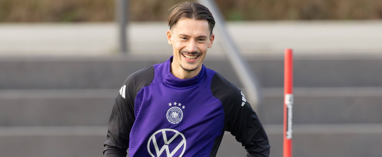 Stolzer Koch: Eintracht-Innenverteidiger Robin Koch hat sich auf einer Pressekonferenz bei der deutschen Nationalmannschaft über seine Einladungen zum DFB-Team geäußert. „Es ist jedes Mal eine Ehre, bei der Nationalmannschaft dabei zu sein. Ich bin kein Spieler, der sich einen Riesenkopf macht. Ich bin sehr gerne hier und gebe im Training oder auch im Spiel Vollgas“, so der Innenverteidiger, der aber doch einen Unterschied zu seiner Rolle bei der SGE ausgemacht hat: „Klar, es ist bei der Eintracht etwas anders, da habe ich als Führungsspieler vielleicht mehr Gespräche neben dem Platz mit jüngeren Spielern. Aber ansonsten ist es das Gleiche, man gibt Gas und will möglichst viel spielen.“ Die Heim-EM, bei der er als einziger Feldspieler ohne Minute blieb, habe sich nachhaltig bei ihm eingeprägt: „Die Euphorie, die wir vor und während des ganzen Turniers gespürt haben, war etwas ganz Besonderes für die Mannschaft. Die Unterstützung des gesamten Landes hat uns durch das Turnier getragen. Leider ging es für alle zu früh zu Ende. Es war etwas ganz Besonderes dabei zu sein, natürlich will jeder Spieler spielen, bedauerlicherweise hat es bei mir nicht geklappt, auf Minuten zu kommen.“