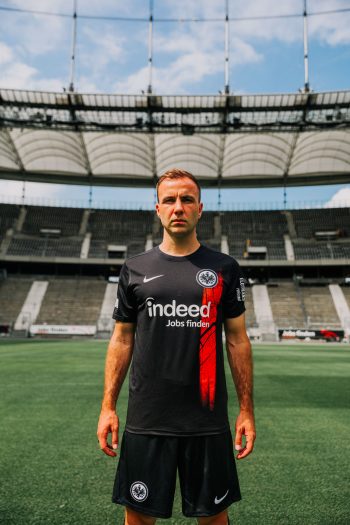 Neues Europatrikot: Eintracht Frankfurt hat am Dienstag das neue Europatrikot präsentiert. Auf der Vorderseite des neuen Dresses ist ein rotes Streifenmotiv zu sehen, in dem ein Teil des Frankfurter Stadtplans zu sehen ist. „Der Slogan ‚Im Herzen von Europa‘ ist zudem dezent in rot-schwarzen Versalien gummiert im Nacken eingearbeitet“, schreibt die SGE. Mit einem Heimsieg am Donnerstag im Qualifikations-Rückspiel gegen Levski Sofia würden die Hessen in der dritten Saison in Folge in einem internationalen Wettbewerb vertreten sein. Das gab es zuletzt in den 90er-Jahren.