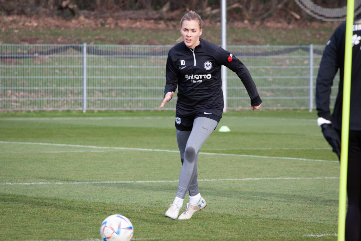 Freigang läutet Endspurt ein: Drei Spiele sind die Eintracht-Frauen noch von ihrem Ziel entfernt: Tabellenplatz drei. Die TSG Hoffenheim sitzt den Adlerträgerinnen mit nur drei Zählern weniger auf dem Konto im Nacken. „Jetzt wollen wir es auch zu einem guten Ende bringen. Und ob wir es wirklich schaffen, hängt einzig und alleine von unserer eigenen Leistung ab. Aber da mache ich mir keine Sorgen“, blickt SGE-Stürmerin Laura Freigang im Interview auf „dfb.de“ zuversichtlich auf die nächsten Aufgaben. „Ich spüre, wie groß die Motivation innerhalb der Mannschaft ist. Wir wollen es jetzt bis zum Saisonende durchziehen, um unser großes Ziel zu erreichen“, so die 25-Jährige weiter. Als nächstes empfängt die SGE diesen Sonntag um 13 Uhr den VfL Wolfsburg im Frankfurter Waldstadion.