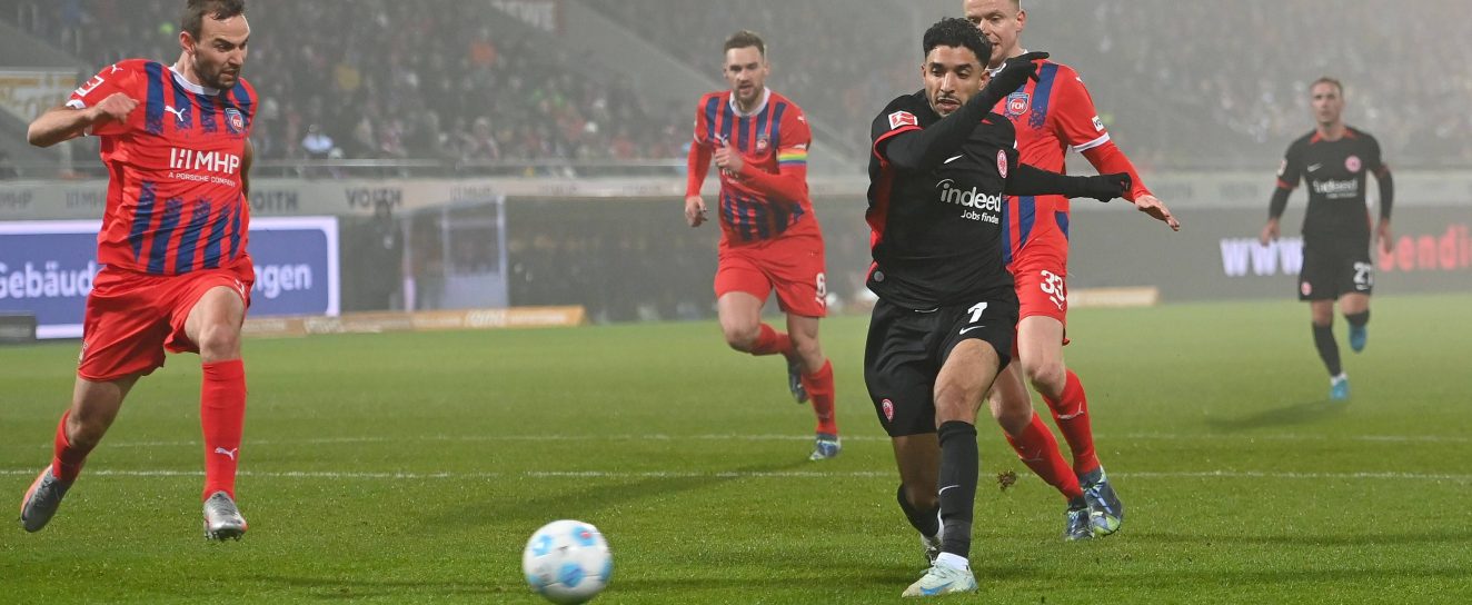 Halbzeitfazit: Heidenheim hielt als großer Außenseiter anfangs gut dagegen. Auch die erste Großchance ging auf das Konto der Hausherren. Mit zunehmender Spieldauer übernahmen die Adlerträger die Spielkontrolle. In der 22. Minute belohnten sich die Hessen: Nathaniel Brown setzte sich clever durch und bediente Omar Marmoush. Der Ägypter vollstreckte eiskalt zur Führung. Auch nach der kalten Dusche blieb Heidenheim bemüht, ohne jedoch Gefahr auszustrahlen.