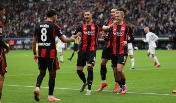 Die Startformation der SGE: Michael Zetterer – Rasmus Kristensen, Aurele Amenda, Robin Koch, Arthur Theate – Nathaniel Brown, Hugo Larsson, Mario Götze, Ansgar Knauff – Ritsu Doan, Jean-Mattéo Bahoya