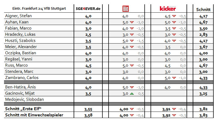 Die Einzelnoten der User von SGE4EVER.de im Überblick: