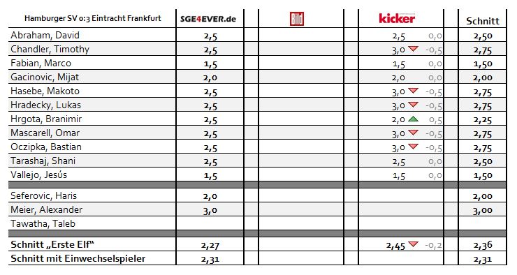 Jesús Vallejo hatte nicht nur von allen Verteidigern die meisten Ballaktionen, sondern war auch maßgeblich am funktionierenden Umschaltspiel der Hessen beteiligt. Wirkte defensiv wiederholt sicher und abgeklärt und wurde deshalb von den Lesern von SGE4ever.de zum Spieler des Spiels gewählt und liegt damit (wenn auch denkbar knapp) vor dem Mexikaner Marco Fabian. Der Mexikaner gab zwei Torvorlagen und kam dieses Mal als Rechtsaußen zum Einsatz, weshalb er vor allem über Flanken offensive Impulse initiierte. Gab mit Branimir Hrgota die meisten Torschüsse (3) ab und spielte die Hamburger Defensive über 90 Minuten lang schwindelig. Liegt mit 7 Scorerpunkten (3 Tore, 4 Vorlagen) ligaübergreifend bereits auf Platz 4.