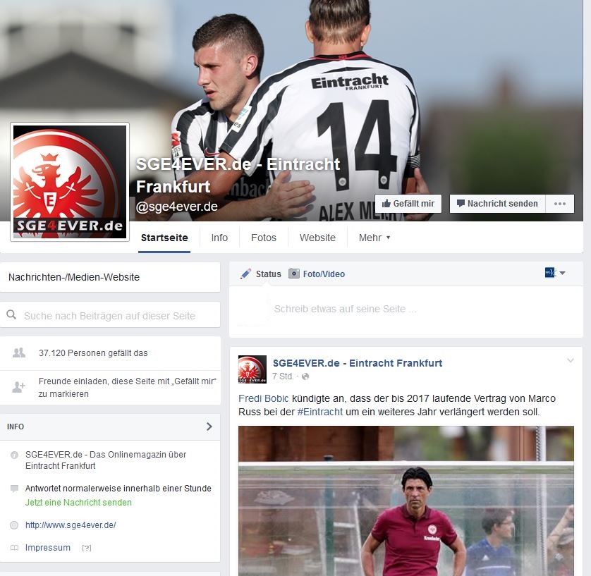 Seit über zwei Jahren versorgt das Onlinemagazin SGE4EVER.de seine Leser im Social Network „Facebook“ mit aktuellen News über Eintracht Frankfurt. Genauer gesagt fiel am 2. Mai 2014 der Startschuss für die Erweiterung des Contents auf der größten Kommunikationsplattform der Welt. Dem digitalen Platz, an dem sich die meisten User über den Tag verteilt aufhalten, und somit noch schneller über Neuigkeiten rund um ihre Eintracht informiert werden und direkt in die Diskussion mit anderen Fans einsteigen können.
