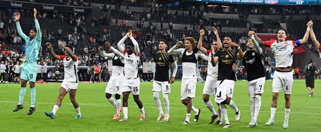 Dieses Feuer ist neben dem gezeigten Einsatz der Mannschaft auch unmittelbar mit der neuen Mischung im Team verbunden. Die Eintracht hat endlich wieder echte Typen in ihrer Mannschaft, die die Mitspieler und auch das Publikum mitnehmen können. Marmoush, der dies in der vergangenen Saison oftmals vergeblich alleine versuchte, wird inzwischen unter anderem von Rasmus Kristensen, Robin Koch oder Arthur Theate unterstützt. Insbesondere Kristensen ist ein Spielertyp, der mit seinem Ehrgeiz, seiner Verteidigungsgier und seinen lautstarken Kommandos ansteckend auf seine Mitspieler wirkt. Wo der Däne ist, ist Feuer und die Leidenschaft ist endlich wieder spürbar. Theate und Kristensen sind große Verstärkungen für den Defensivverbund und haben den Hessen viel Stabilität gebracht, aber es wird eben auch immer deutlicher, dass sie auch menschlich ein wichtiger Faktor für den tollen Saisonstart sind. Insgesamt scheint die Stimmung im Team inzwischen auch eine ganz andere als vergangene Saison zu sein. Die Sorge vor einem Führungs-Vakuum aufgrund der Karriereenden von Makoto Hasebe und Sebastian Rode war groß, aber es zeigt sich, dass es Sportvorstand Markus Krösche gelungen ist, eine spannende Mischung aus Erfahrung und jungen Wilden zusammenzustellen, die sich gegenseitig ergänzen und einen tollen Spirit entwickelt haben. Große Freude für den Mitspieler – sei es Kaua Santos, der erneut zu überzeugen wusste und von seinen Mitspielern gelobt wurde oder eben Jean-Mattheo Bahoya, der nach langer Zeit mal wieder zum Einsatz kam und einen Assist beisteuerte. Die Spieler freuen sich mit- und füreinander und es scheint bereits nach kurzer Zeit eine echte Einheit entstanden zu sein.