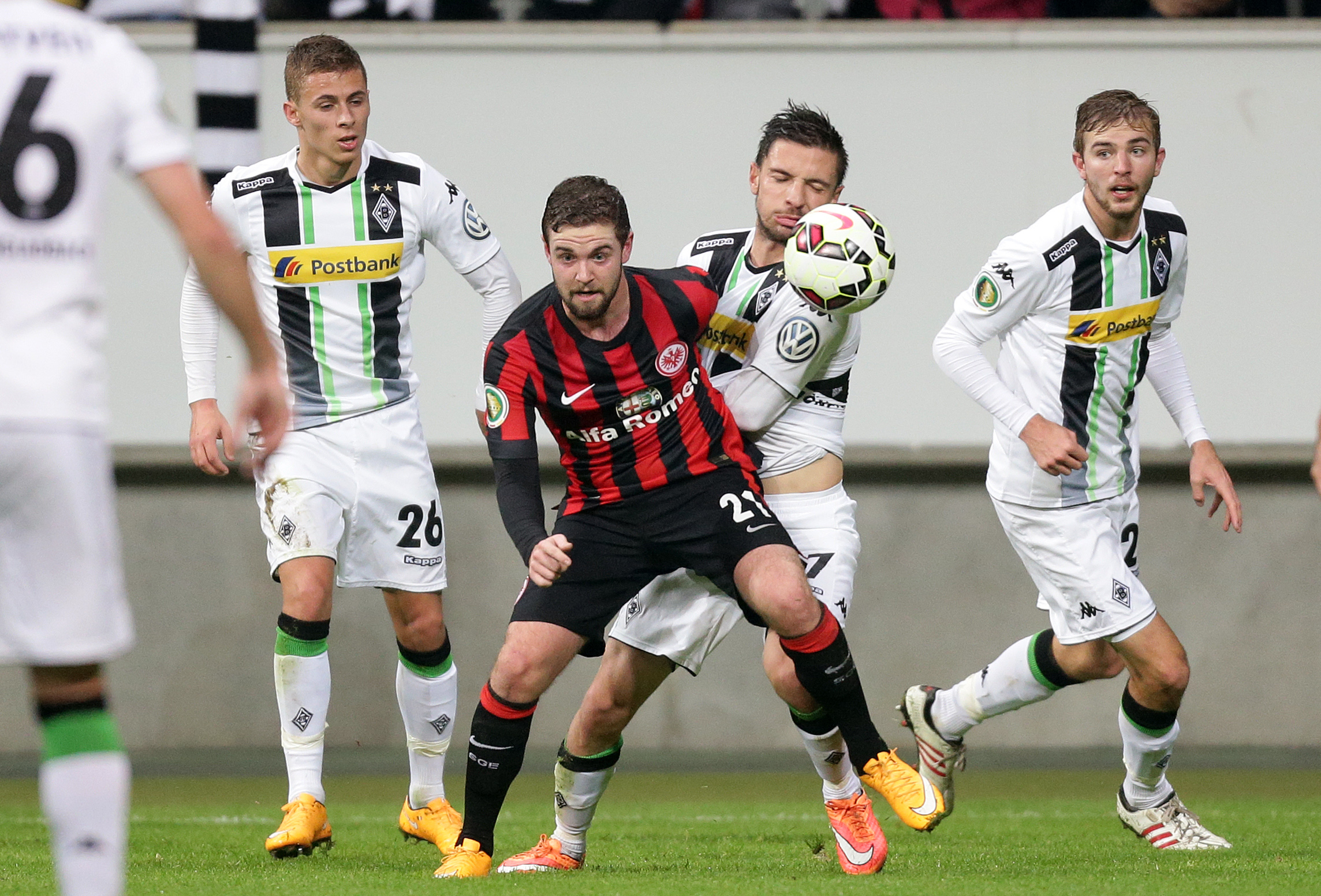 Tatsächlich schienen die Gladbacher keine großen Probleme mit den Offensivbemühungen der Eintracht zu haben. Im Gegenteil – die Konter der Borussia waren brandgefährlich und so musste man sich beim starken Schlussmann Wiedwald bedanken, dass Hrgota, Kramer oder Stranzl nicht schon für einen uneinholbaren Halbzeitstand sorgen konnten. Favres Mannschaft war teilweise so drückend überlegen, dass ein Klassenunterschied auf dem Feld zu erkennen war. „Die Gladbacher haben eine ganz breite Brust. Sie haben uns viel laufen gelassen und besitzen eine tolle Raumaufteilung. Wir waren im Kollektiv auf allen Positionen immer wieder einen Schritt zu spät und so konnten sie ihr Kurzpassspiel aufziehen„, erkannte Bastian Oczipka die deutliche Unterlegenheit der Adler an. Und doch hätte das Pendel nach Wiederanpfiff in Richtung der Eintracht ausschlagen können – jedoch scheiterte der für Seferovic eingewechselte Vaclav Kadlec nach tollem Pass von Stefan Aigner am prächtig reagierenden Yann Sommer. Ansonsten aber änderte sich nichts im Vergleich zum ersten Durchgang.