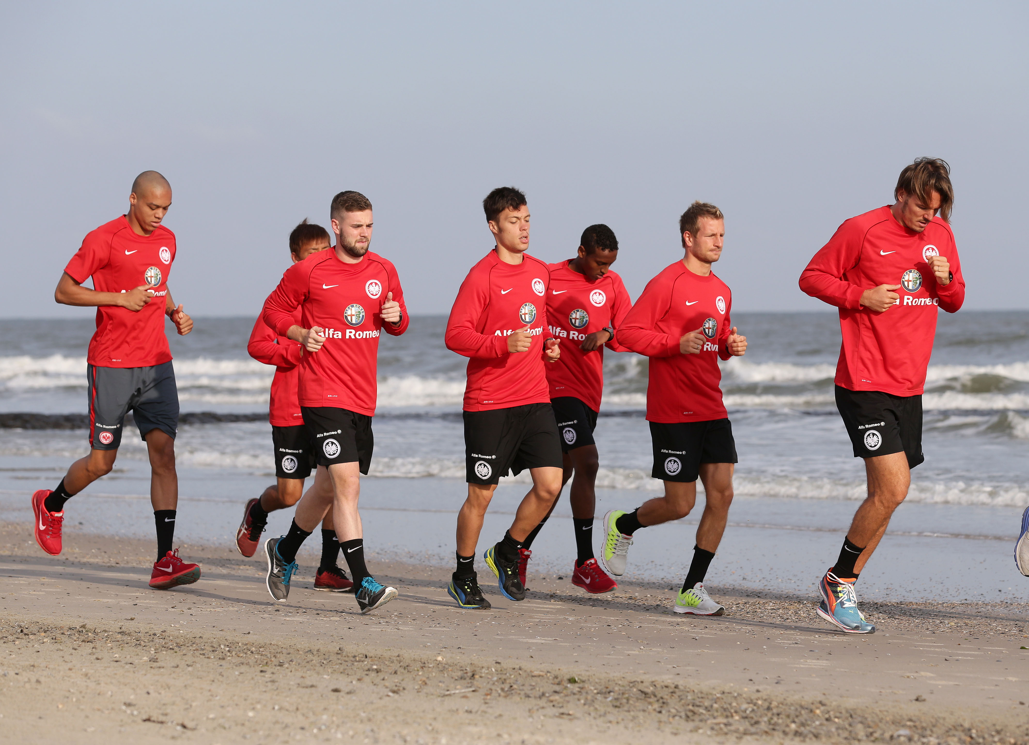 Nachdem unsere Adler gestern mit insgesamt sechs Kleinflugzeugen sicher auf der Insel Norderney angekommen sind, fanden heute und gestern Nachmittag bereits die ersten Trainingseinheiten statt. Der Tagesplan sah gem. fr-online wie folgt aus: Pünktlich um 7:00 Uhr wurden unsere Jungs geweckt, damit es gegen 7:15 Uhr mit dem Fahrrad zum Strand ging. Dort angekommen stand zuerst ein langer Morgenlauf durch die Dünen und Strandabschnitte der Insel an. Gegen 11:00 Uhr fand dann die erste Trainingseinheit auf dem Sportplatz statt. Anschließend gab es gegen 13:30 Uhr das Mittagessen, das mit einer folgenden Ruhepause abgeschlossen wurde. Gegen 17:00 Uhr wird dann zur zweiten Trainingseinheit gebeten. Und das alles bei bisher sehr angenehmen 18-19 Grad, kleineren Wolken und frischem Wind. Übrigens, wem das Schwitzen zu stark wird, der kann bei frischen 18,5 Grad in der Nordsee seine Abkühlung finden. Insgesamt sind die Trainingsbedingungen optimal. Einer guten Vorbereitung scheint nichts mehr im Wege zu stehen.