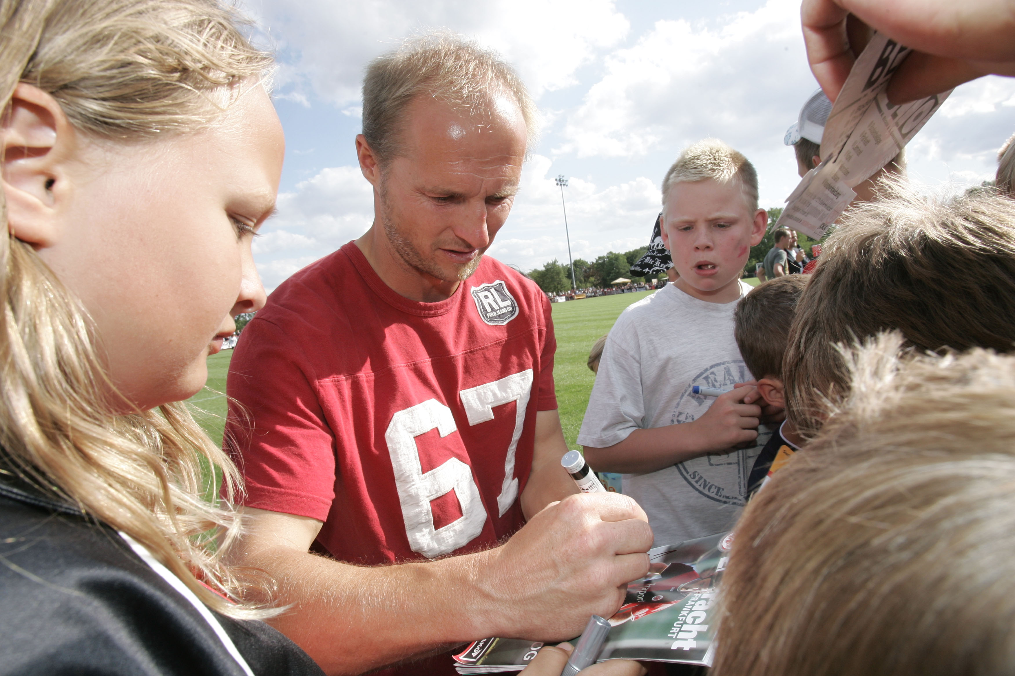 Er war wahrscheinlich auch deshalb so beliebt, weil er stets den direkten Kontakt zu den Fans suchte – schließlich war er schon immer einer von ihnen. „Nach dem wichtigen 2:1 gegen Unterhaching in der Aufstiegssaison stieg ich auf die Auswechselbank, um mit den Fans zu jubeln. Das Teil brach beinahe in sich zusammen. Und kurz zuvor, beim 1:0 gegen Uerdingen, griff ich mir eine der großen Blockfahnen – seitdem habe ich Hochachtung vor den Jungs, die so ein Ungetüm das ganze Spiel über schwenken!“, erinnert sich der einstige Mittelfeldspieler. Den Höhepunkt erreichte seine Fannähe nach dem letzten Spieltag der Aufstiegssaison 1997/98 beim Spiel gegen Fortuna Köln: „Als das Spiel abgepfiffen wurde, brachen alle Dämme. Erst flog mein Trikot, dann meine Stutzen, schließlich meine Schienbeinschoner in die Menge. Die hätten an diesem Tag auch mein Kaugummi genommen. ‚Wollt ihr auch noch meine Hose?‘, fragte ich die Fans. ‚Klar, her damit‘, kam es als Antwort. Also verabschiedete ich mich auch von meiner Buchse. Da stand ich nun, wie Gott mich schuf. Ein Fotograf gab mir sein Leibchen und ich rannte in die Kabine.“