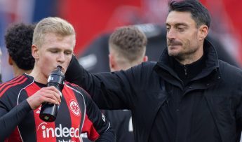 Sonderlob gab es für den eingewechselten Jean-Mattéo Bahoya, der das Tor vorbeireitete und bereits gegen Rom einen guten Eindruck hinterließ: „So haben wir uns das vorgestellt, die Flügelspieler ins Eins-gegen-eins zu bringen und der Außenverteidiger geht durch. Dadurch hat er Platz, um diese Flanke zu schlagen. Das hat Mattéo schon in Rom gemacht, als leider Hugo (Ekitiké, Anm. d. Red.) den Ball nicht reinköpft. Heute ist Can (Uzun, Anm. d. Red.) da, der als ballferner Achter toppositioniert war. Schönes Tor“, so der Fußballlehrer, der sich zufrieden zeigte und mit dem Punkt leben kann: „Aufgrund der schwachen ersten Halbzeit war es leistungsgerecht. Aufgrund der zweiten Halbzeit kann darüber streiten, ob es verdient wäre, wenn der Siegtreffer fällt. 1:1 gegen eine auswärtsstarke Wolfsburger Mannschaft. Den Punkt nehmen wir jetzt mit!“, lautete das Fazit des 44-Jährigen und nahm das Positive aus dem Spiel mit.