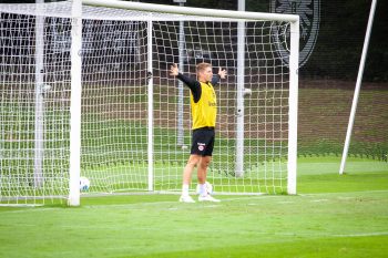 Pünktlich um 11 Uhr liefen das Trainerteam und die Spieler am Trainingsplatz auf. Die drei verbliebenden Torhüter sammelten sich mit Torwart-Trainer Jan Zimmermann und begannen mit Aufwärmübungen. Auffällig dabei: Der zweite Torwart, Diant Ramaj, war im Training nicht mehr dabei. Er wurde in den letzten Tagen vermehrt mit einem Wechsel in die Eredivise in Verbindung gebracht: Rekordmeister Ajax Amsterdam soll knapp zehn Millionen Euro für die Dienste des 21-Jährigen bieten. Nachdem Ramaj im heutigen Training nicht mitspielte, verdichten sich die Zeichen auf einen Abschied.