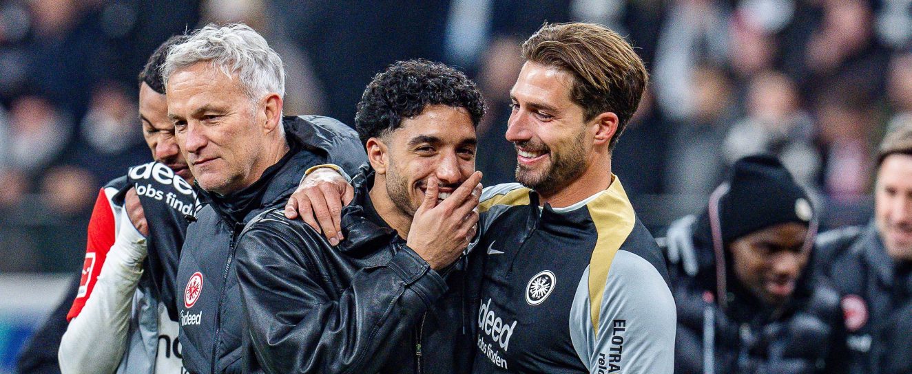 Zu Omar Marmoush: „Wie er sich von Anfang an eingebracht hat, ist unbeschreiblich. Das zeigt seine Reaktion. Die eine oder andere Träne hatte er schon in den Augen. Es ist schon etwas ganz besonderes, deshalb macht mich das schon etwas traurig. Aber es ist Teil des Geschäfts. Wir wünschen ihm alle alles Gute, auch wenn wir ihn gerne hierbehalten hätten. Arthur Theate ist auf jeden Fall ein geeigneter Kandidat als Nachfolger als Kabinen DJ.“