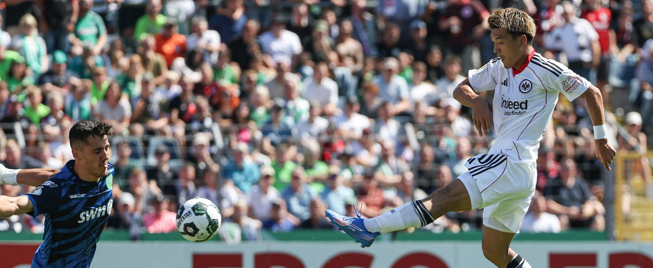 Die Verpflichtung von Ritsu Doan war der nächste clevere Schachzug von Sportvorstand Markus Krösche, um die Mannschaft für die kommende Saison zusammenzustellen. Gleich im Pokal-Auftakt beim FV Engers kam der Japaner von Beginn an zum Einsatz. Auf der rechten Seite harmonierte er zusammen mit Rasmus Kristensen und zeigte, wie er der Eintracht weiterhelfen kann.