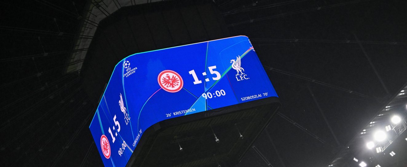 5:1 bzw. 1:5 ist aktuell das Frankfurter Champions League Ergebnis! Zum Startschuss gab es einen Sieg gegen Galatasaray Istanbul. Anschließend folgten nun zwei Pleiten gegen Atletico Madrid und nun zu Hause gegen FC Liverpool. Der englische Meister kam mit vier Niederlagen im Gepäck an den Main und ging auch in der Fremde erneut in Rückstand. Doch nachdem sich die Reds einigermaßen auf Gegner und Wetterbedingungen eingegroovt haben, ging gehörig die Post ab. Vor allem nach dem Pausentee fiel die Mannschaft von Dino Toppmöller förmlich auseinander und konnte einem zwischenzeitlich Sorgen machen – auch, wenn der Gegner eben jener FC Liverpool war.